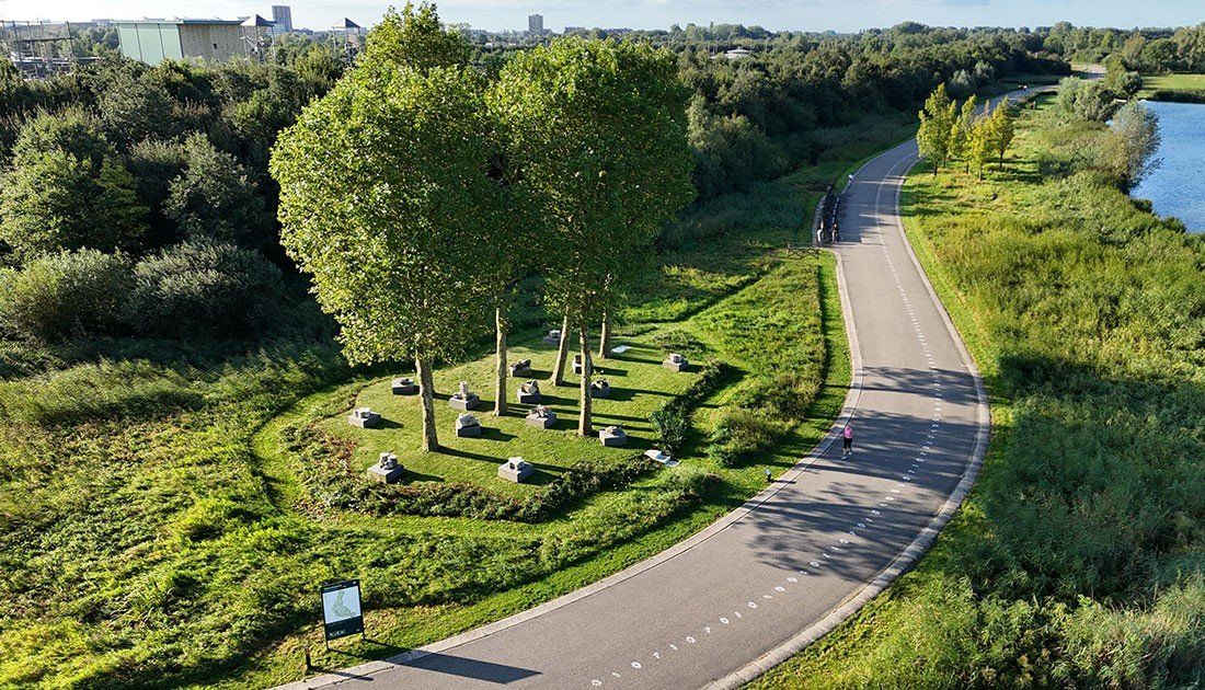 Dankzij het project ‘Van Dom tot steengoed’ is zoveel mogelijk restmateriaal heringezet in producten en projecten toegankelijk voor alle Utrechters. Een vliegwiel voor circulariteit. Eén van deze projecten is het kunstwerk •Ex Situ•In Situ• ‘Van z’n plaats, op z’n plek’ in het Máximapark, gerealiseerd in 2023. Op initiatief van Brokkenmákers en een ontwerp van kunstenaar Paul de Kort.